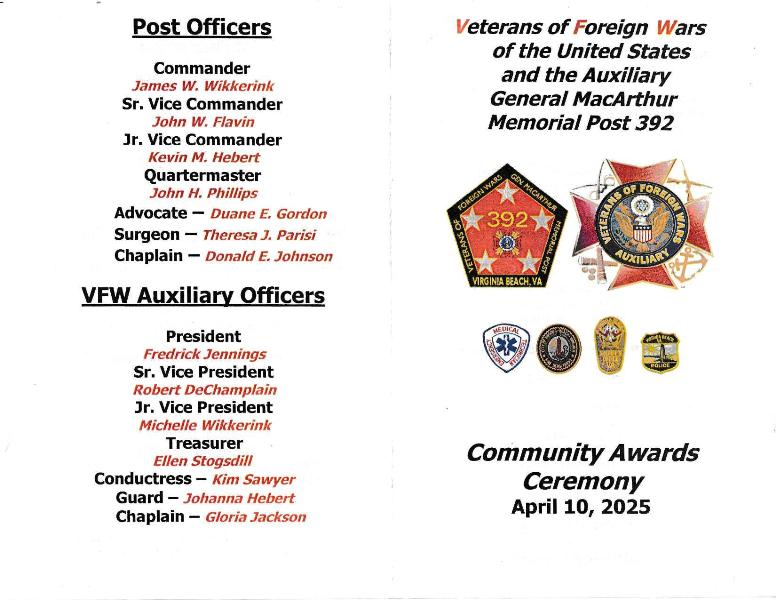 Copyright © 2010-2025 Veterans of the Foreign Wars of the United States and Veterans of the Foreign Wars of the United States Post 392. All rights reserved. Privacy Policy