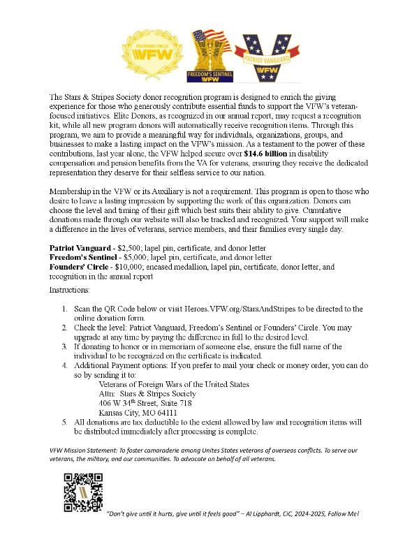 CONGRATULATIONS TO VFW POST 392 FOR HAVING EARNED ALL-AMERICAN HONORS FOR THE 2024-2025 BUSINESS YEAR!!